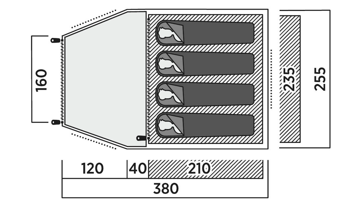 4-personers kompakt kuppeltelt med ståhøjde - ideelt til par og små familier. Indgangsparti/opholdsrum med aftagelig bund. Klar til Twinflower Tent Light LED-strip (sælges separat). Pakkes kompakt uden bund