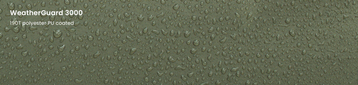 - WeatherGuard 3000, 190T polyester PU-belagt, brandhæmmende