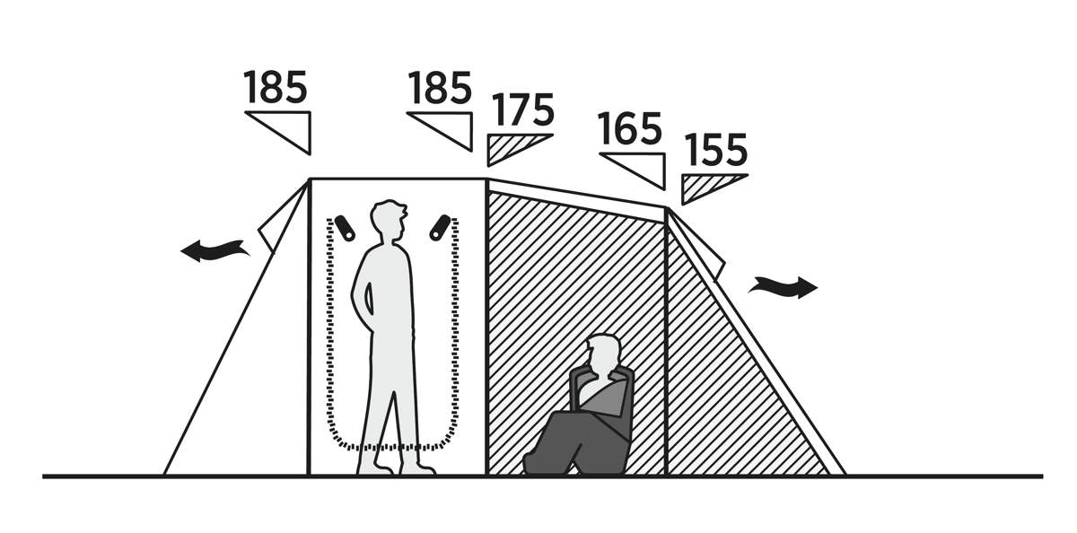 - Optimerad tältkonstruktion som maximerar utrymmet i vardagsdelen