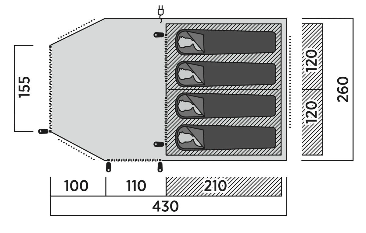 Fullt utrustat tunneltält för 4 personer – idealiskt för par eller små familjer. Den sluttande fronten ger maximalt vardagsutrymme samt 2 sovkabiner. Klar för Twinflower Tent Light LED-remsa (säljs separat).