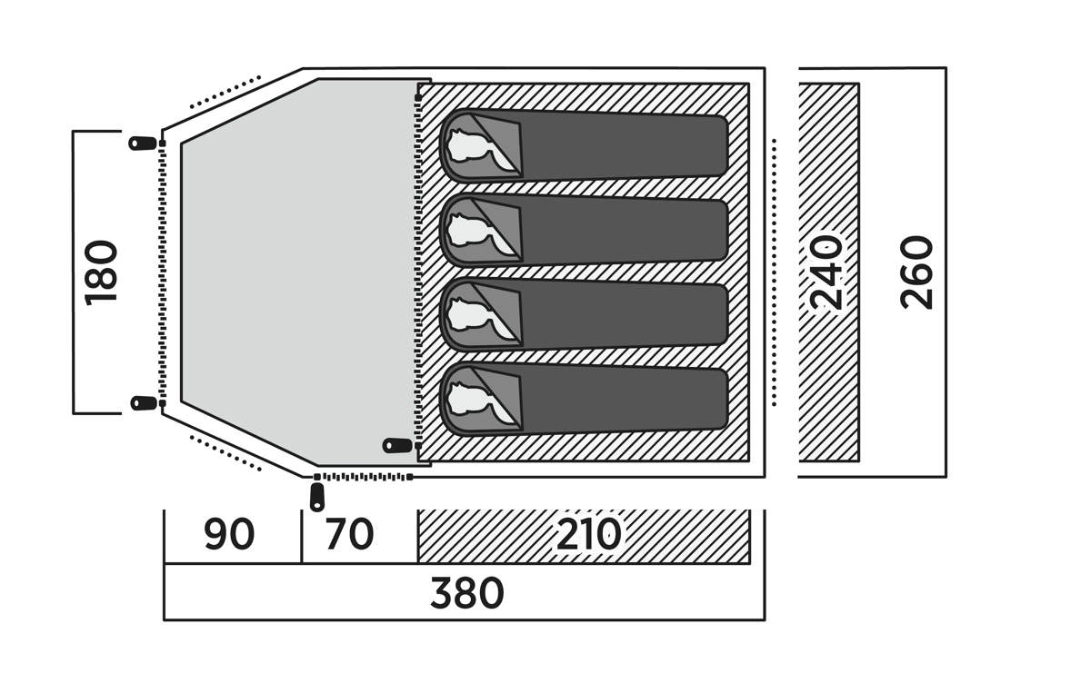 - Lomsdal 4 är ett mångsidigt kupoltält med ett utökat förvaringsutrymme och två ingångar för extra bekvämlighet. Det har en stor veranda med avtagbart golv, vilket gör det enkelt att sätta upp och underhålla. SleepTight-innertältet blockerar ljus och garanterar en lugn sömn – perfekt för morgnar och tidiga kvällar. Idealiskt för att få ut det mesta av varje utomhusäventyr.