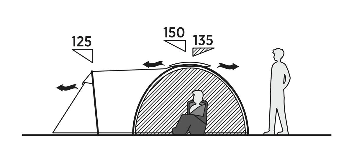 Stort 4-personers kupoltält – stor absid med avtagbar golvduk, två dörrar, ventilationsöppningar fram och bak, fäste för lykta och förvaringsfickor