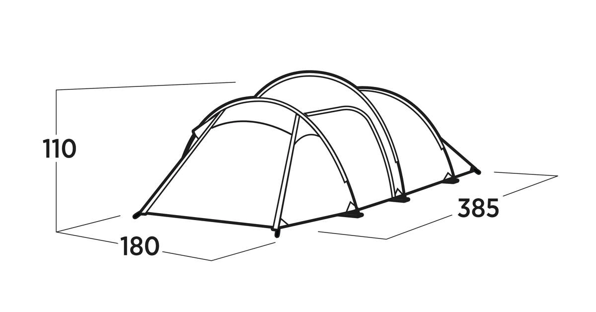 3-personers tunneltält för vandrings- och cykelturer – lätt, kompakt och praktiskt, med aluminiumstänger, rymligt förtält och sidodörr.