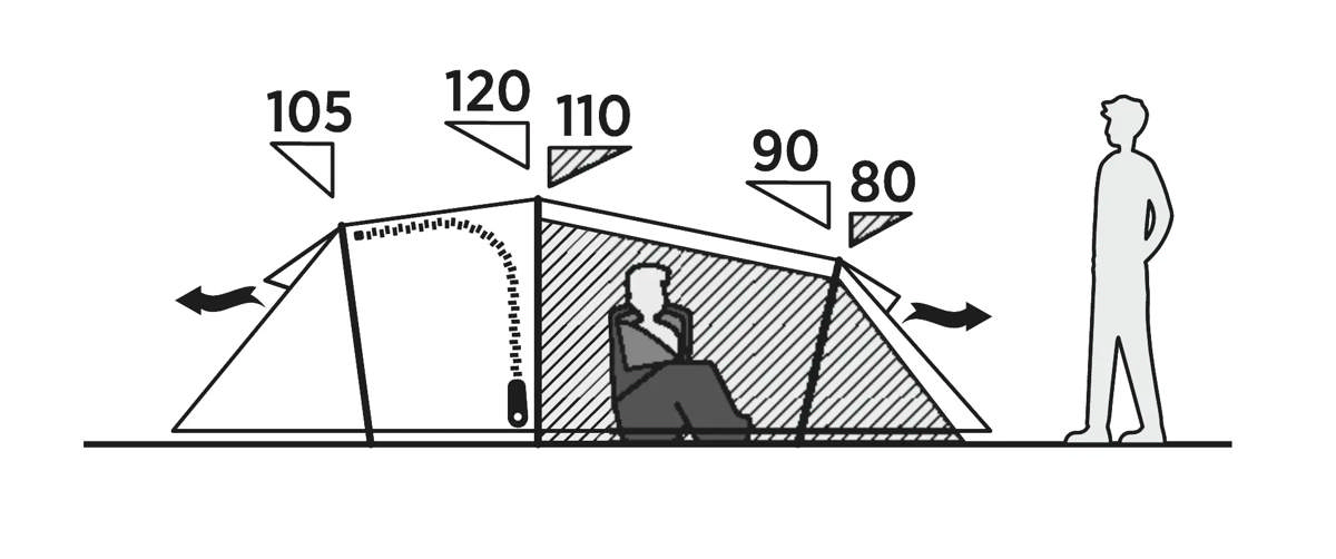 - Torklina i innertältet för att hänga upp blöta och fuktiga kläder