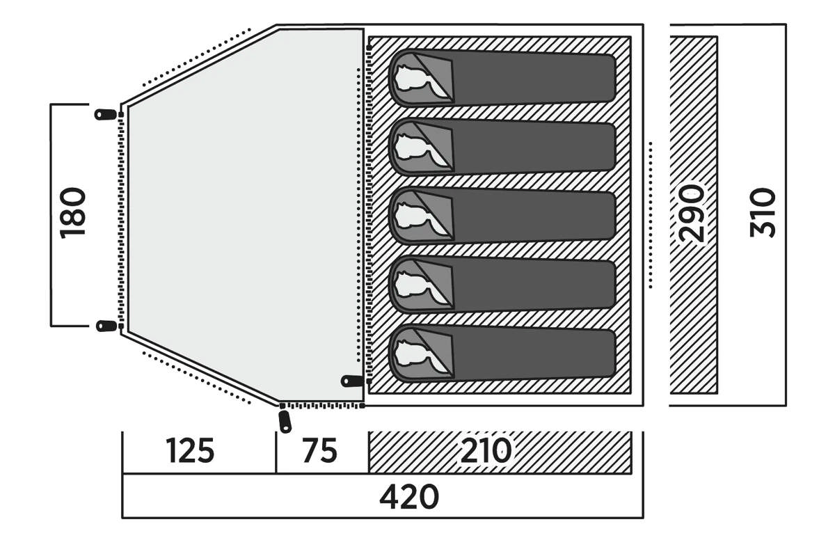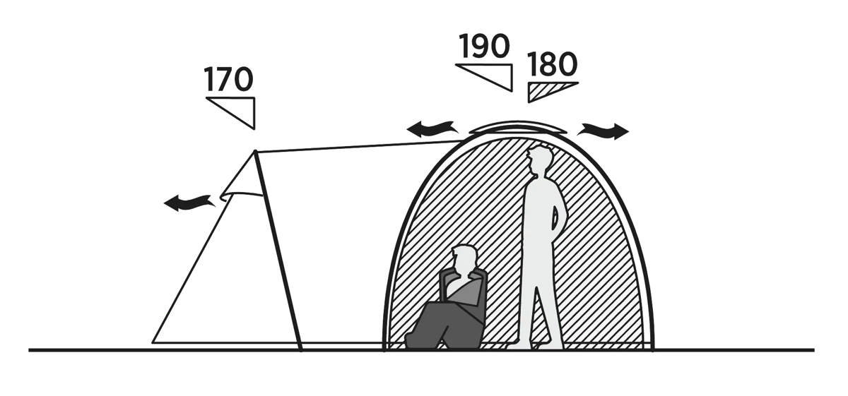 - Kinn 5 är ett kupoltält med en frontingång som leder till ett rymligt förtält, perfekt som förvaringsutrymme. SleepTight-innertältet, designat med mörkare material och optimal ventilation, garanterar en bekväm sömn på morgonen och tidigt på kvällen. Tältet har fönster på båda sidor med uppdragbara gardiner som ger både ljus och avskildhet, medan det avtagbara badkarsgolvet kan tas bort för att minska vikt och packstorlek. Detta gör Kinn 5 till ett mångsidigt och praktiskt val för alla typer av utomhusäventyr.