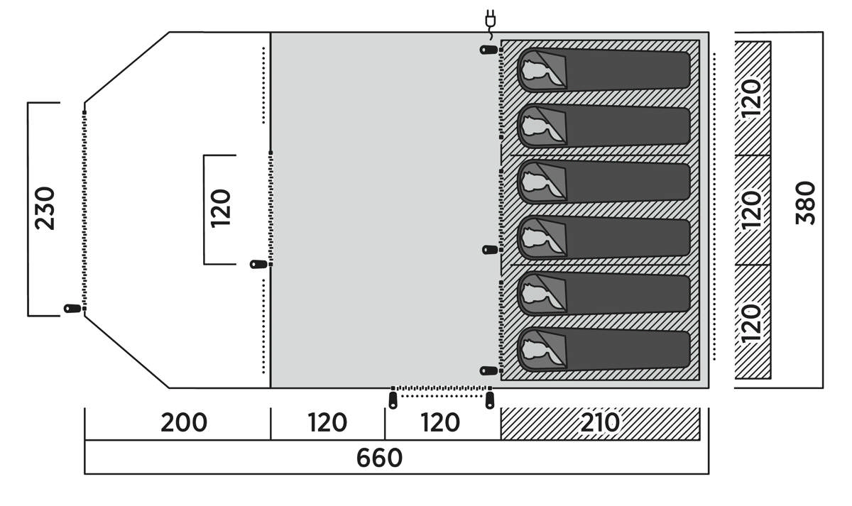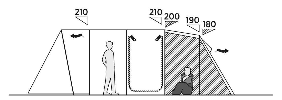 - Sola 6 är ett rymligt 3-zons familjetält som kombinerar komfort och funktionalitet för alla campingäventyr. Tältet har ett stort vardagsrum, en framzon för våt utrustning och separata sovrum för avskildhet, som kan tas bort vid behov med hjälp av remmar. SleepTight-innertältet, designat med mörkare material och optimal ventilation, garanterar en god natts sömn. En sidodörr med ett heltäckande nät förbättrar luftflödet och gör tältet lätt att använda, medan en nätförsedd dörr i vardagsrummet håller insekter ute. Fram- och sidodörrarna har dubbla dragkedjor, vilket möjliggör anpassad ventilation och åtkomst. Med ståhöjd i vardagsrummet och mångsidiga ventilationsmöjligheter är Sola 6 den perfekta campingpartnern för familjen.