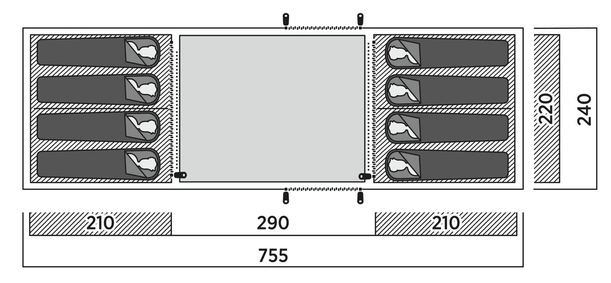 - Leka Twin 8 är perfekt för vänner och större familjer som behöver utrymme och flexibilitet. Tältet har en vis-a-vis-design med ett rymligt vardagsrum och separata sovrum i varje ände. Fönster på båda sidor med uppdragbara gardiner och två motstående ingångar ger ljus, ventilation och enkel åtkomst. SleepTight-innertältet, designat med mörkare material och optimal ventilation, garanterar en god natts sömn. Täckt ventilation i båda ändarna möjliggör justerbart luftflöde, medan ståhöjd i vardagsrummet och praktiska linhållare bidrar till extra komfort och bekvämlighet.