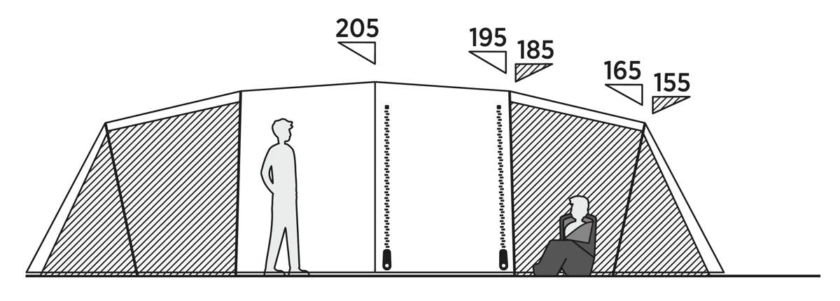 Vis-à-vis tunneltält för 8 personer – För stora familjer och grupper, med två sovrum och gemensamt allrum. Avtagbar golvduk. Förberett för Twinflower Tent Light LED-remsa (säljs separat). Kompakt packstorlek utan golvduk.